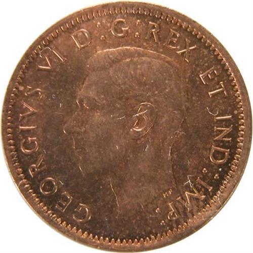 1947 Maple Leaf, Pointed 7 ICCS MS-65 Red. About 85% red
