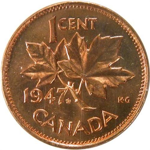 1947 Maple Leaf Ptd 7, ICCS MS-65 Red