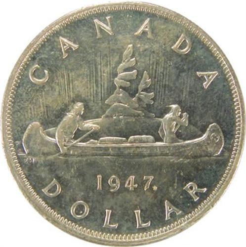 Canada Silver Dollar 1947 Maple Leaf Single HP ICCS MS-64. This is a fully struck piece with great lustre and near flawless pale golden toned surfaces. It is tied as the sixth highest of all varieties graded by ICCS