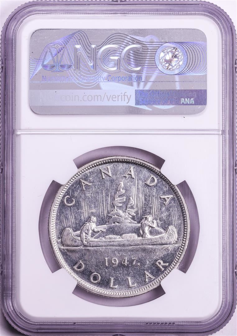 One 1947 Maple Leaf at Date Canada $1 George VI Silver Dollar Coin NGC AU Details. NGC Certified.
