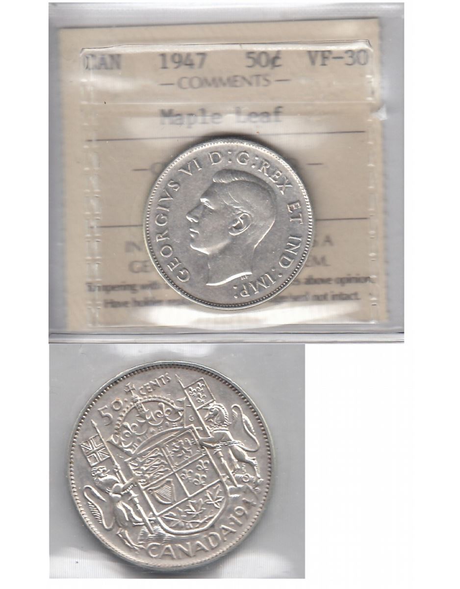 1947 Maple Leaf variety Canada 50-cent ICCS Certified VF30