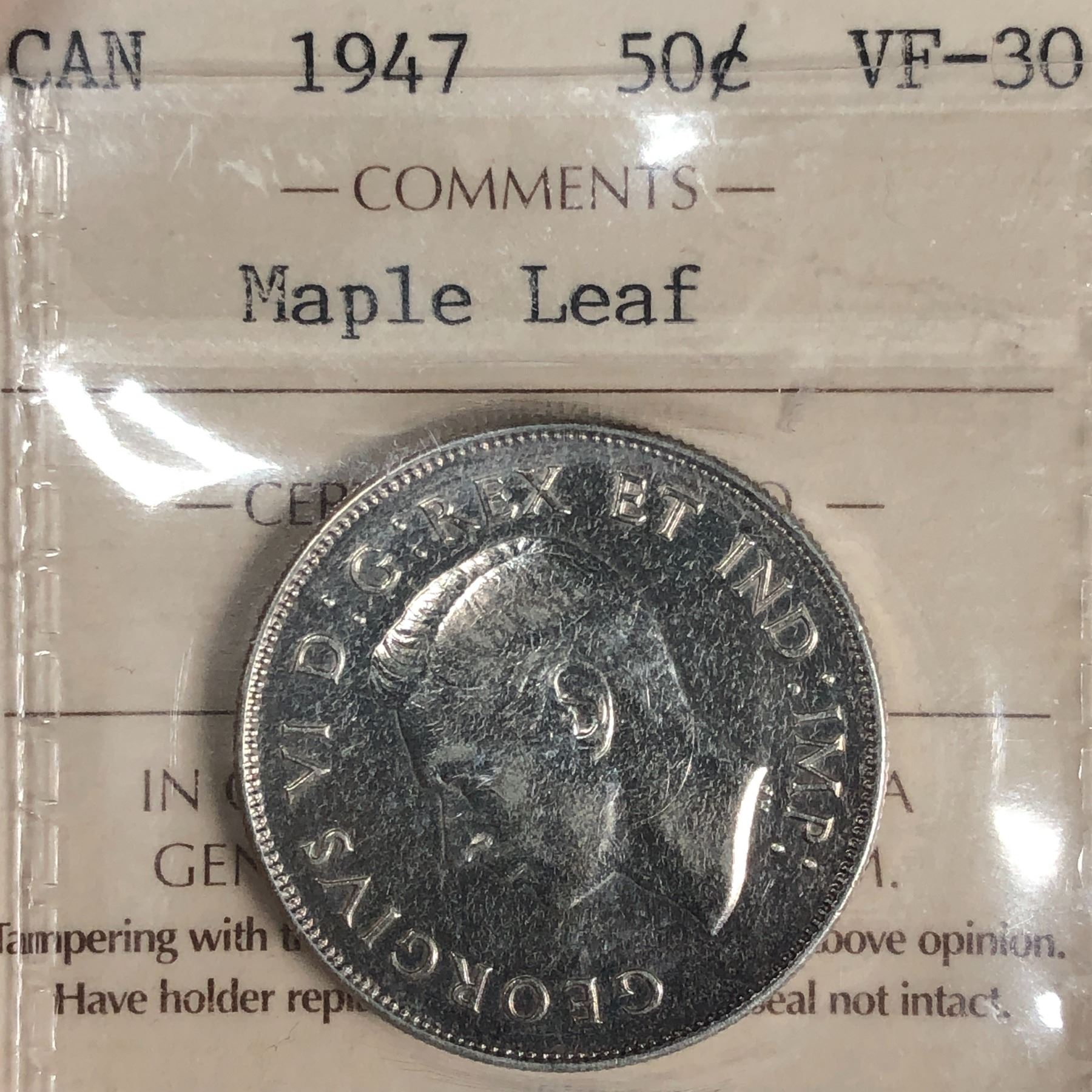 1947 Maple Str.7 King George VI 50 Cents ICCS VF_30