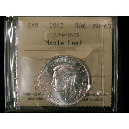 1947 Maple leaf 50¢ ICCS MS-63, fully brilant
