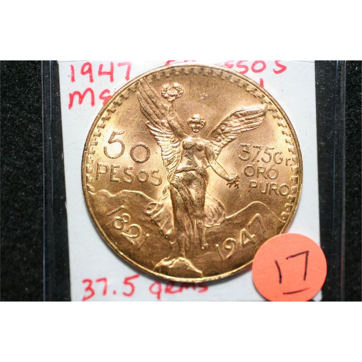 1947 Mexico 50 Pesos Gold coin, 37.5 grms