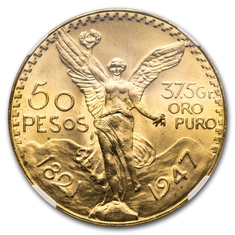 1947 Mexico Gold 50 Pesos MS-66+ NGC