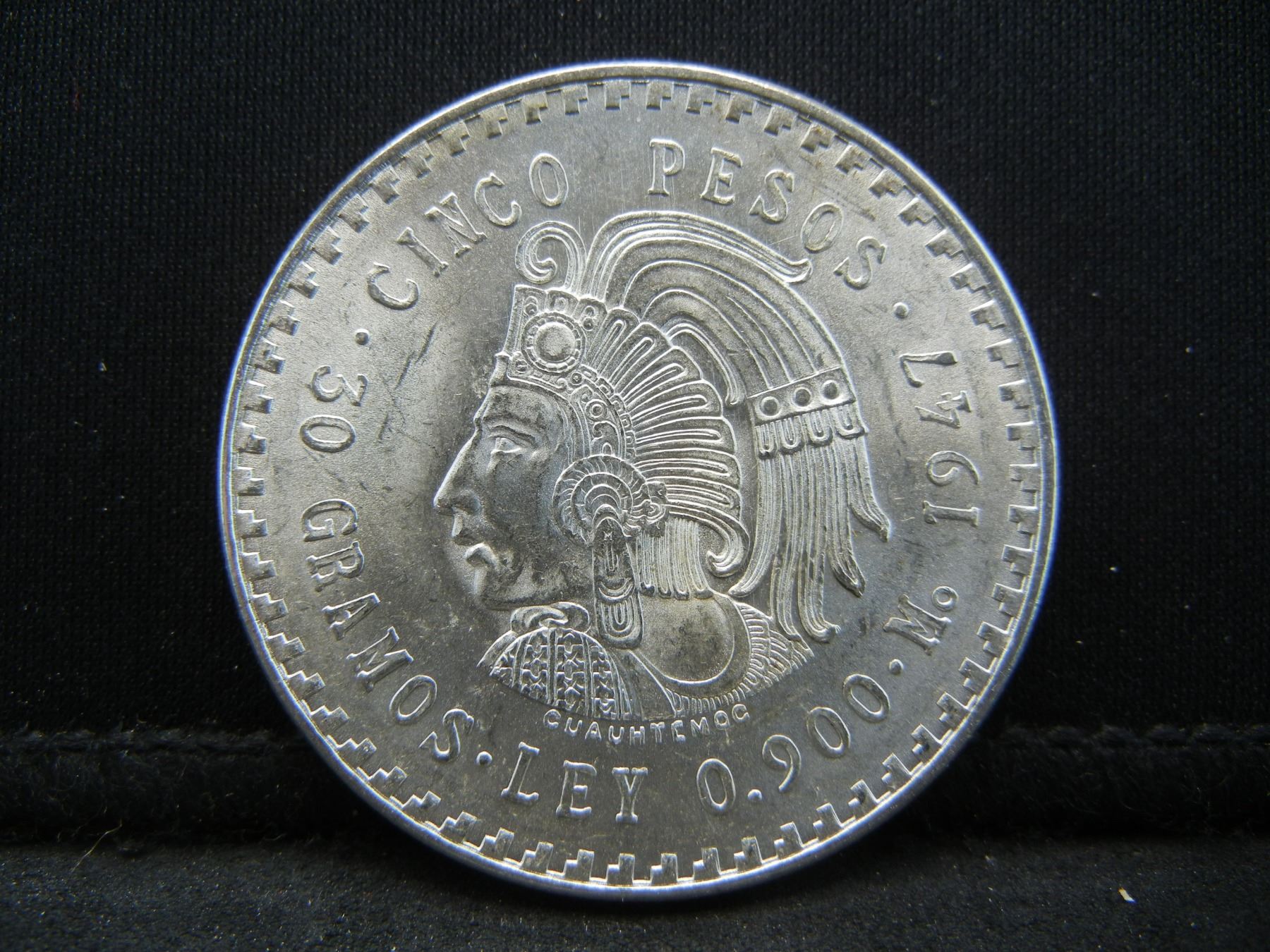 1947 Mexico Silver Cinco Pesos CH BU Flashy