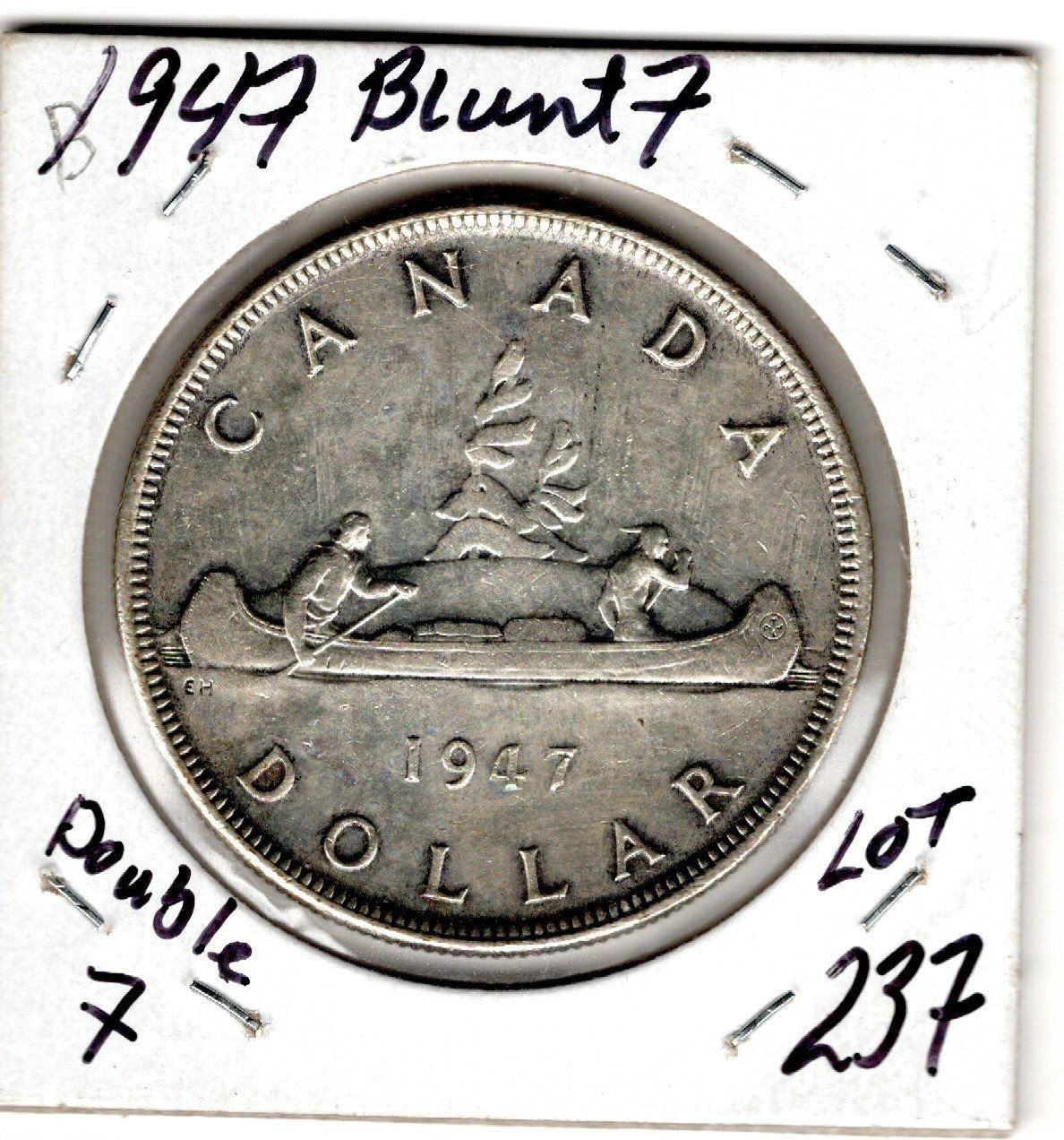 1947 ONE DOLLAR, BLUNT 7 DOUBLE 7