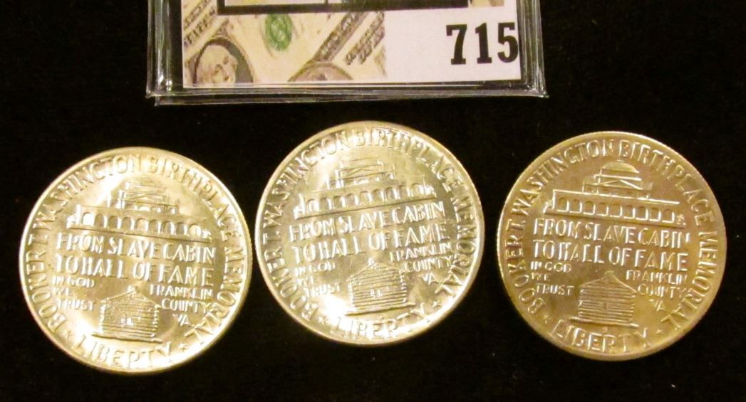 1947 P, D, & S Booker T. Washington Silver Commemorative Half Dollar Set, Brilliant Uncirculated.