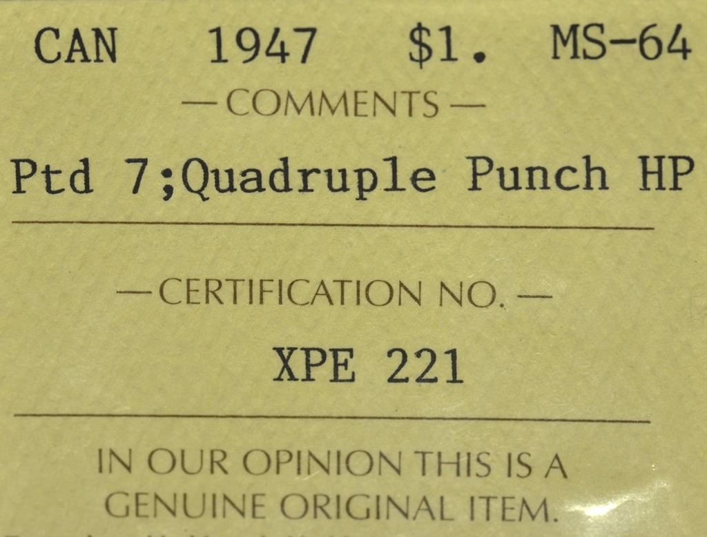 1947 P7 QHP $1 ICCS MS-64 (TOP 10)