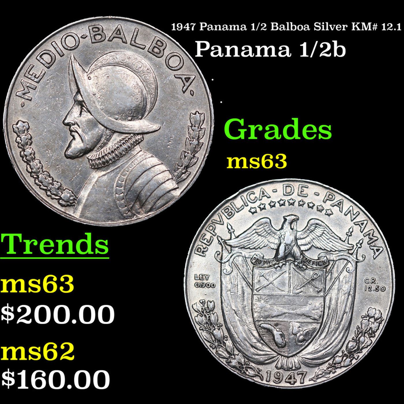 1947 Panama 1/2 Balboa Silver KM# 12.1 Grades Select Unc.