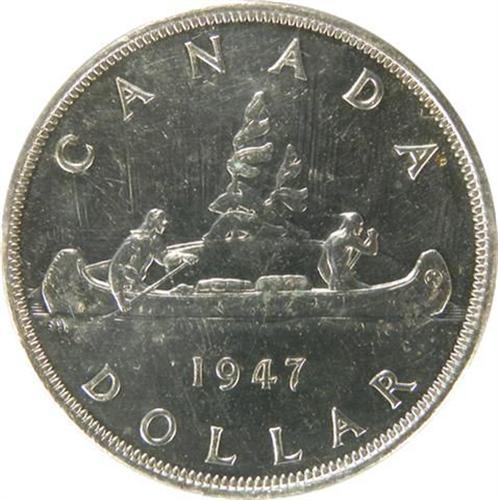 Canada Silver Dollar 1947 Pointed 7, Quadruple HP ICCS MS-62. Pale golden toning