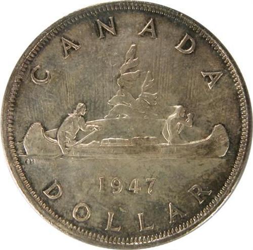 Canada Silver Dollar 1947 Pointed 7 Single HP ICCS AU-50. Light-medium toning