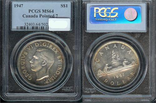 1947 Pointed PCGS MS64. Lovely russet and blue tones over full lustre. Rare in this grade!