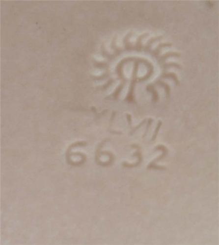 1947 ROOKWOOD VASE. Pink matte with relief leaf decoration. Marked on bottom “6632”. 5.25” H