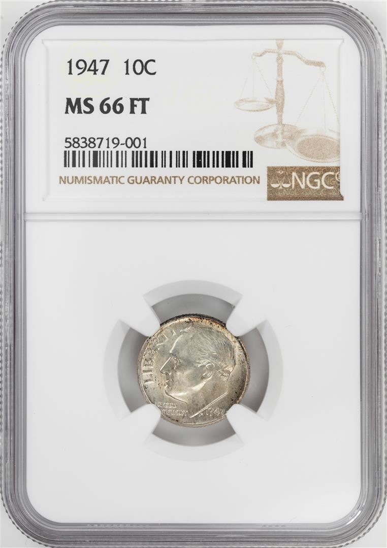One 1947 Roosevelt Dime Coin NGC MS66FT. NGC Certified.