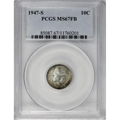 <B>1947-S 10C MS67 Full Bands PCGS.</B></I> PCGS Population (24/1). NGC Census: (0/0). Mintage: 34,840,000. (#85087)<BR><BR><B>Coin Engraver:</B> John R. Sinnock<BR><BR><b>Shipping:</b> Coins & Currency (<a target="_blank" href="http://www.heritageauctions.com/common/shipping.php">view shipping information</a>)