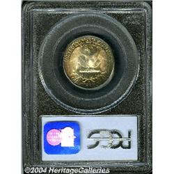 <B>1947-S<25C> MS67 PCGS.</B></I> Gorgeous waves of orange, sea-green, rose, and electric-blue colors ensure the originality of this lustrous and well struck Superb Gem. An exceptionally preserved example. Population: 97 in 67, 3 finer (9/04). <BR><BR><B>Important notice:</B> Heritage usually auctions material at the rate of 200-250 lots per hour. On some occasions eBay Live bid software or the Internet may not be able to keep up with the pace of the auction. We recommend placing a realistic absentee bid now as insurance to avoid disappointment. Occasionally the auctioneer may eliminate or reject an eBay Live bid, and the auctioneer may also reopen a lot after the close of the eBay live bidding (usually because we missed an audience bid), and may reject your bid even if it shows you as the winning bidder. By bidding via eBay Live, you agree that Heritage may award the lot to another bidder at its sole discretion under the circumstances described above or any other reasonable circumstances. Since eBay bids are not shown to us until we open the lot on the floor, we treat those bids just like floor bids. In most cases the floor responds before the eBay bid is presented to us, due to Internet lag time, so for consistency we have made it a policy that floor bids are always considered first over tie eBay live bids. Also please note that all Heritage lots purchased through eBay Live carry a 20% Buyer's Premium. Please make sure you read the Terms and Conditions before you bid.