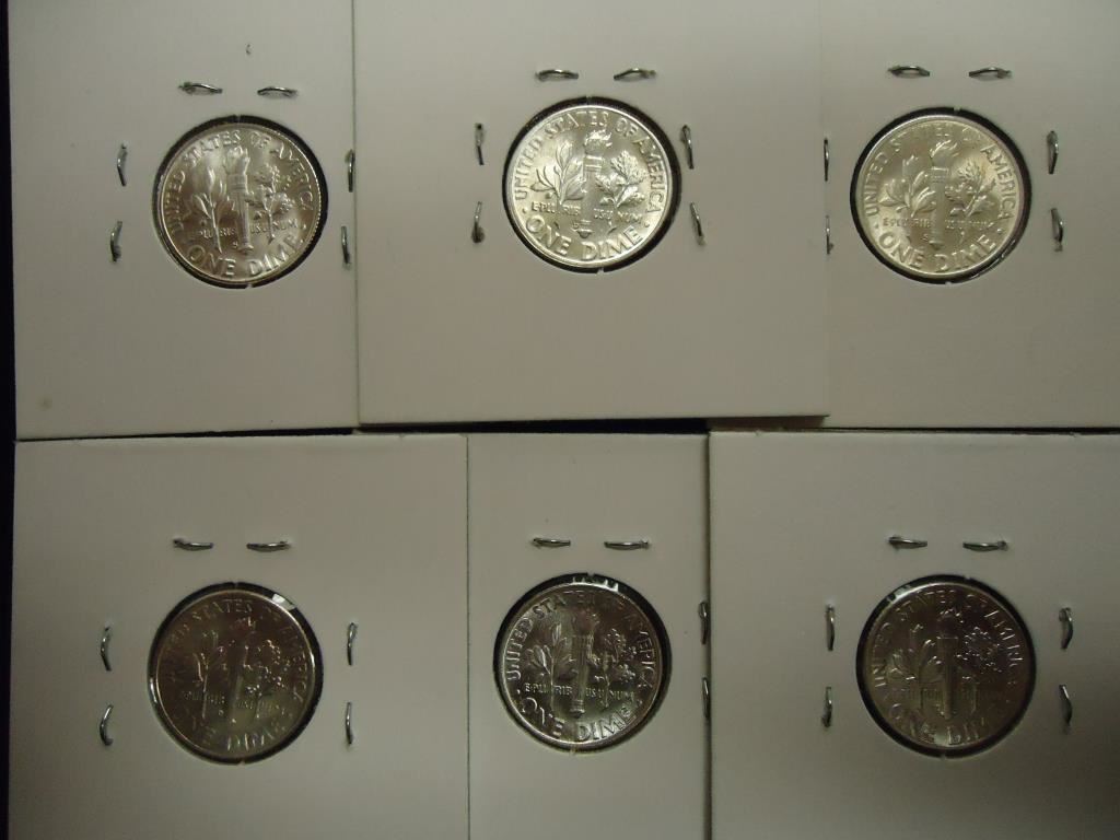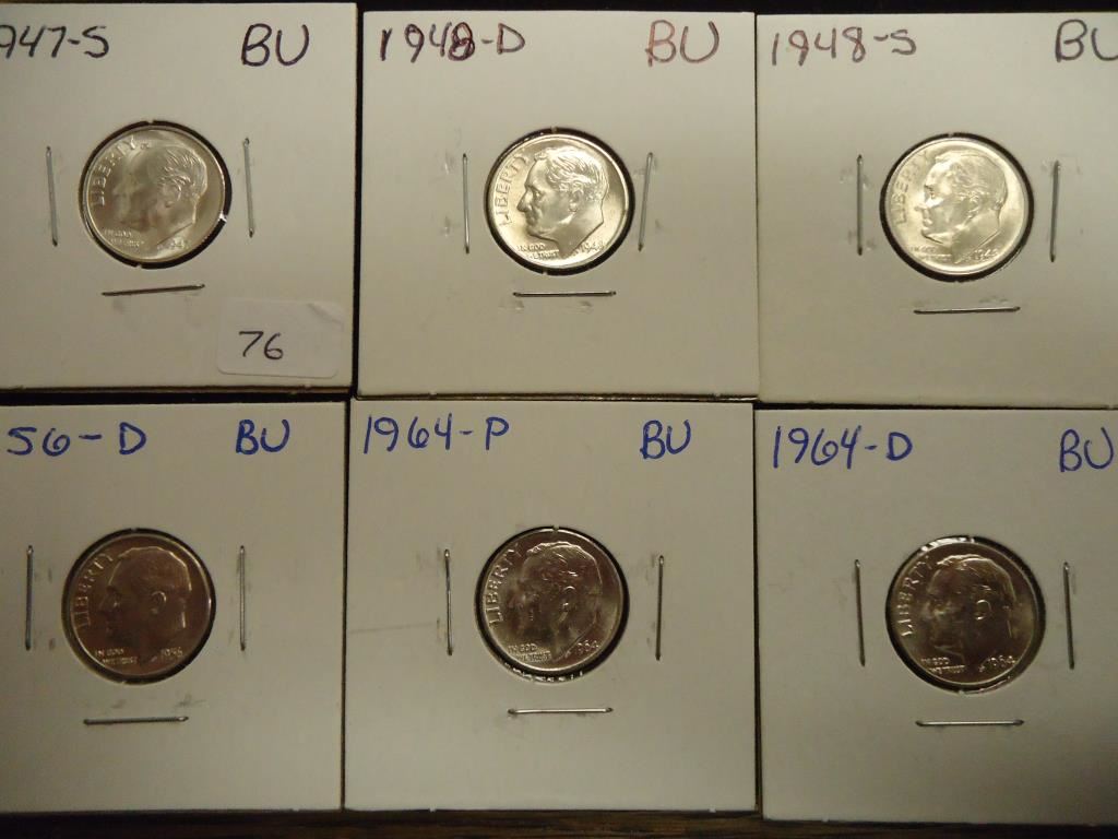 1947-S,48-D,48-S,56-D,64-P & 64-D UNC ROSY SILVER DIMES