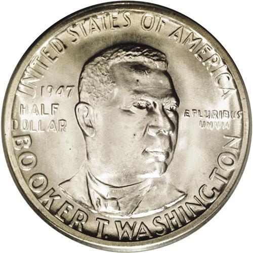 <B>1947-S<50C> Booker T. Washington MS66 PCGS.</B></I> Bright essentially untoned surfaces exhibit dazzling luster and sharply struck devices. Some wispy slide marks on the cheek are mentioned for accuracy. Very attractive overall. Population: 140 in 66, 2 finer (3/06). <BR><BR><B>Important notice:</B> Heritage usually auctions material at the rate of 200-250 lots per hour. On some occasions eBay Live bid software or the Internet may not be able to keep up with the pace of the auction. We recommend placing a realistic absentee bid now as insurance to avoid disappointment. Occasionally the auctioneer may eliminate or reject an eBay Live bid, and the auctioneer may also reopen a lot after the close of the eBay live bidding (usually because we missed an audience bid), and may reject your bid even if it shows you as the winning bidder. By bidding via eBay Live, you agree that Heritage may award the lot to another bidder at its sole discretion under the circumstances described above or any other reasonable circumstances. Since eBay bids are not shown to us until we open the lot on the floor, we treat those bids just like floor bids. In most cases the floor responds before the eBay bid is presented to us, due to Internet lag time, so for consistency we have made it a policy that floor bids are always considered first over tie eBay live bids. Also please note that all Heritage lots purchased through eBay Live carry a 20% Buyer's Premium. Please make sure you read the Terms and Conditions before you bid. This lot is being auctioned in conjunction with a live floor auction by Heritage Galleries & Auctioneers. All final auction and invoice information will be supplied by Heritage Galleries & Auctioneers, and all other information should be considered preliminary. Lot:5118 <BR><BR><B>Winning Notification and Billing:</B> After the FINAL session in this auction is complete, Heritage will send e-mail and snail mail invoices. This process normally takes several days. All final auction and invoice information will be supplied by Heritage Galleries & Auctioneers, and all other information should be considered preliminary. <BR><BR>This auction will be conducted on a live auction floor and over the Internet through eBay Live. If you choose to place an absentee bid, please take a moment to <font color='#0000ff'><u><a href='http://pages.ebay.com/liveauctions/help/before/laabsentee.html'>learn how eBay Live absentee bidding works</a></u></font><font color='#000000'>