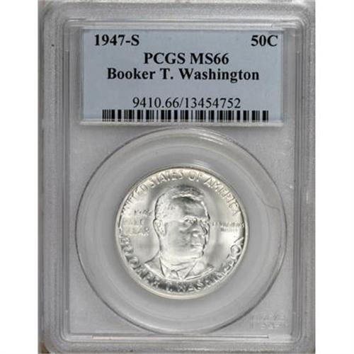 <B>1947-S 50C Booker T. Washington MS66 PCGS.</B></I> PCGS Population (159/6). NGC Census: (176/11). Mintage: 100,000. Numismedia Wsl. Price for NGC/PCGS coin in MS66: $372. (#9410)<BR><BR><b>Shipping:</b> Coins & Currency (<a target="_blank" href="http://www.heritageauctions.com/common/shipping.php">view shipping information</a>)