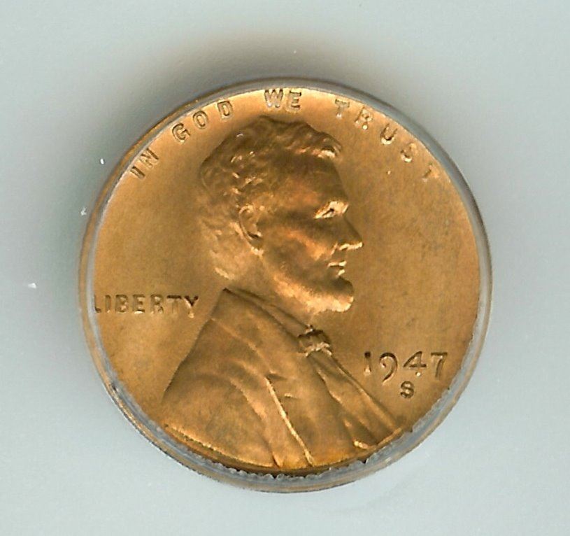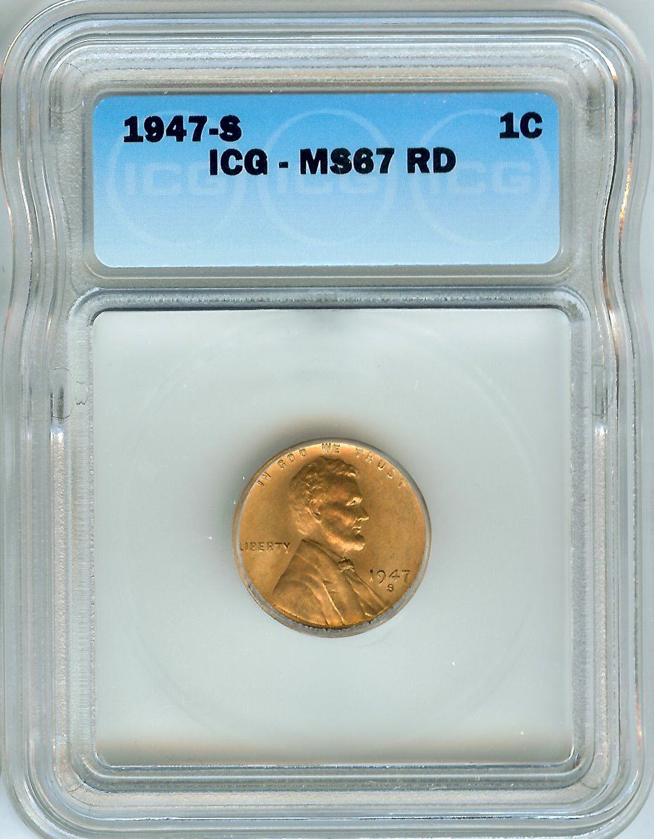 1947-S LINCOLN WHEAT CENT ICG MS-67 RED SCARCE THIS NICE!