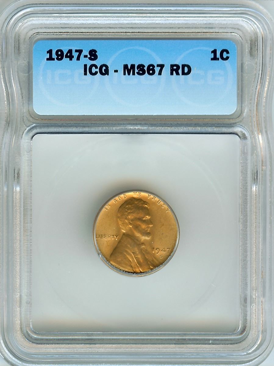 1947-S LINCOLN WHEAT CENT ICG MS67 RED