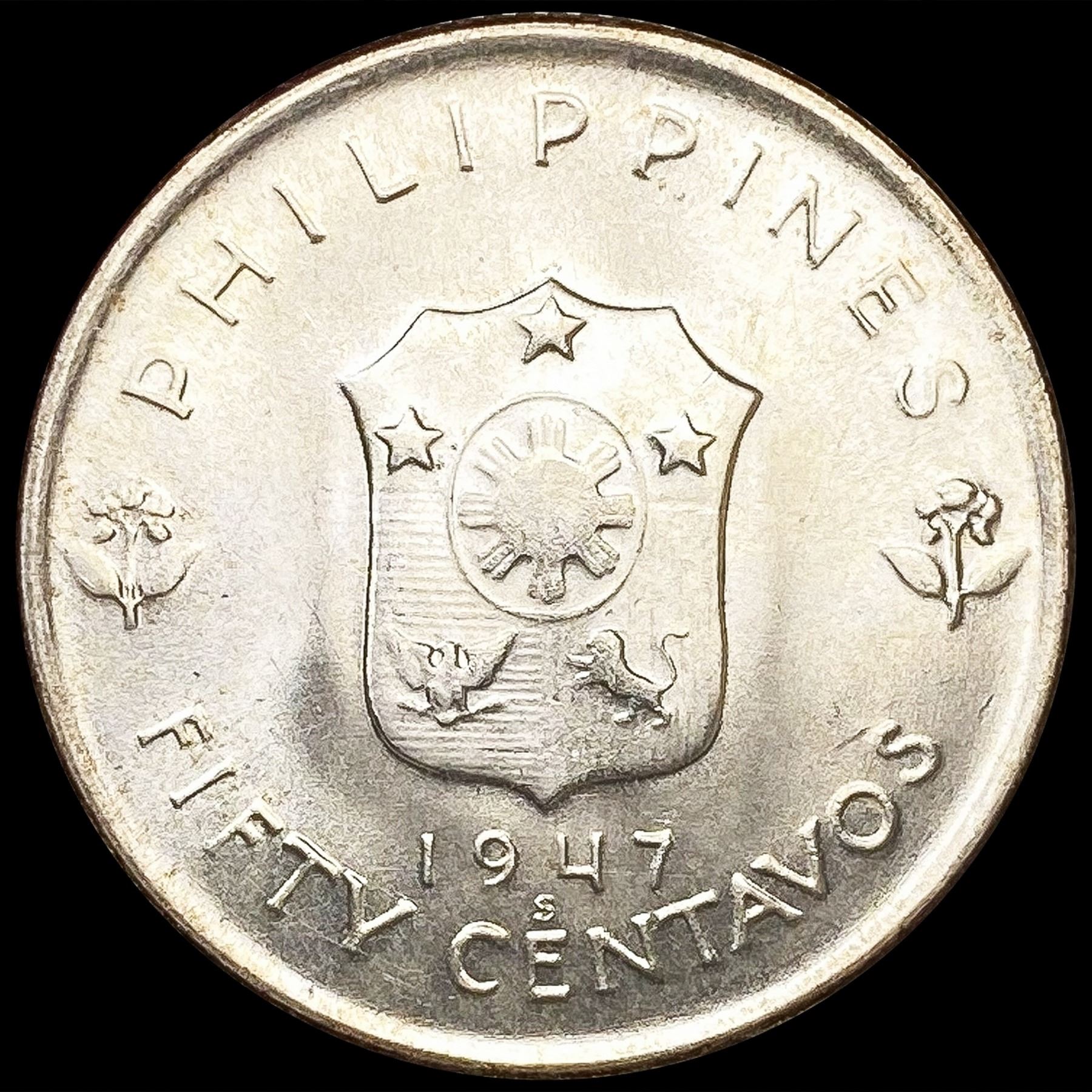 1947-S MacArthur Silver 50 Centavos UNCIRCULATED