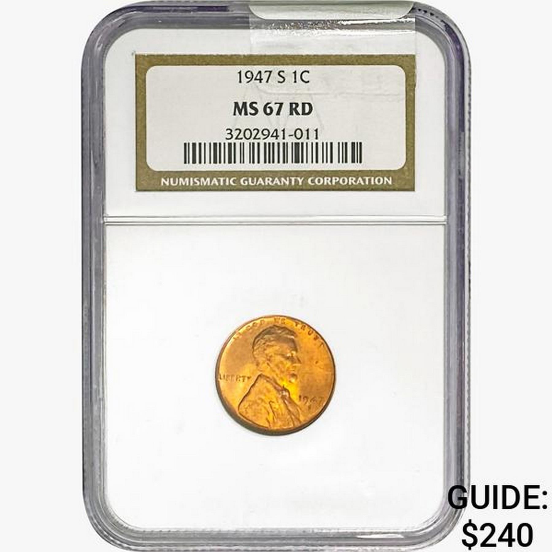 1947-S RD Wheat Cent NGC MS67