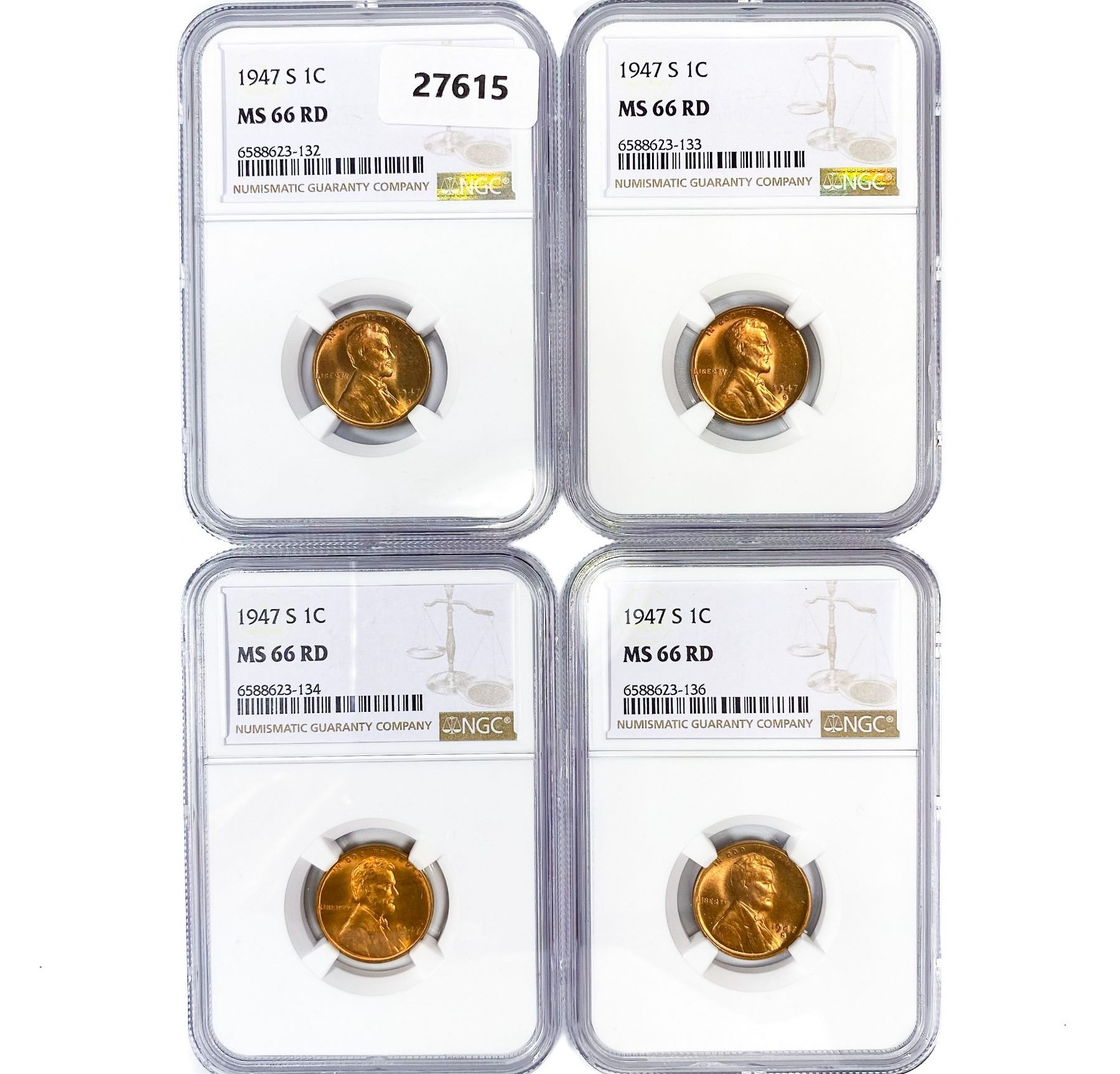 1947-S Set (4) Wheat Cent NGC MS66 RD