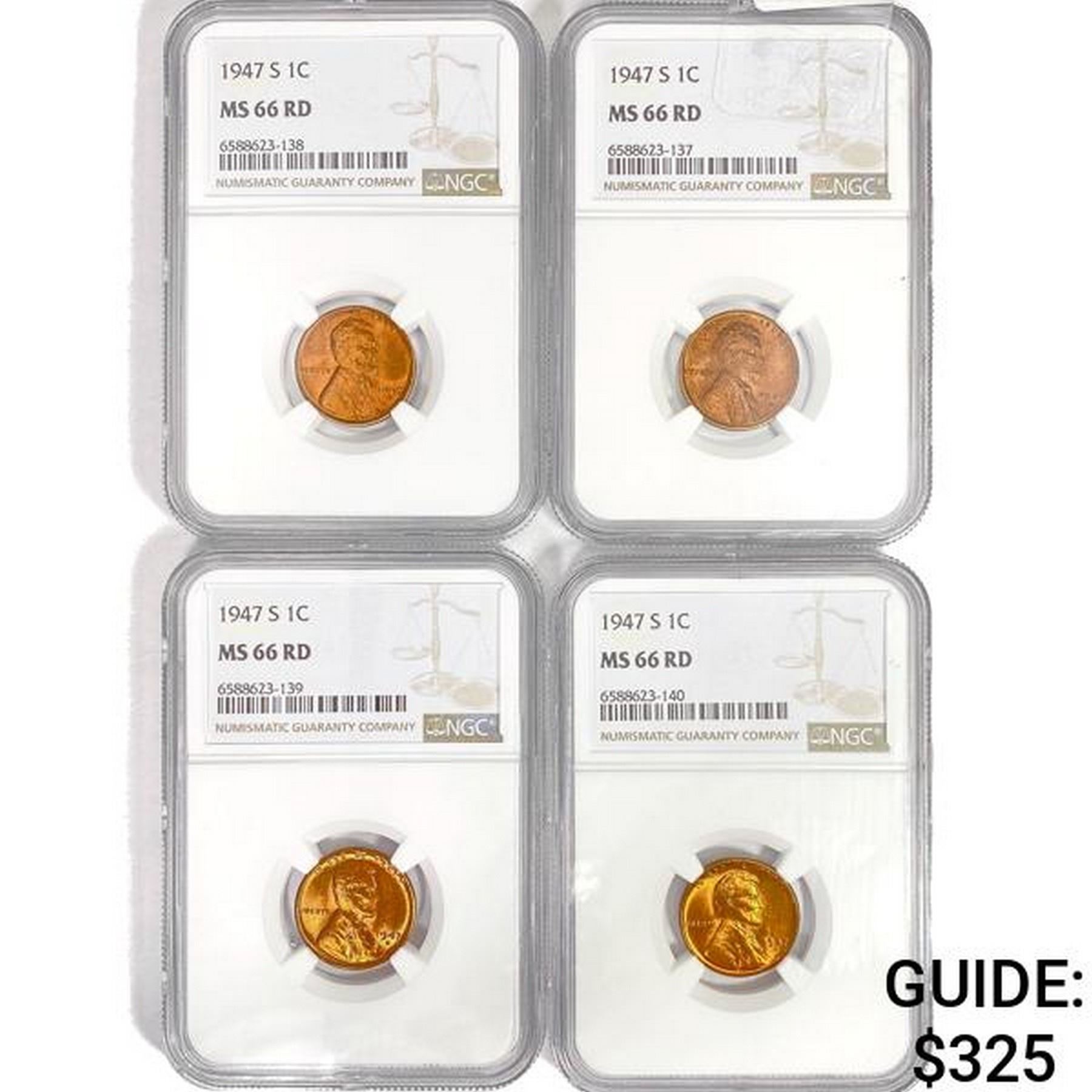 1947-S Set [4] Wheat Cent NGC MS66 RD