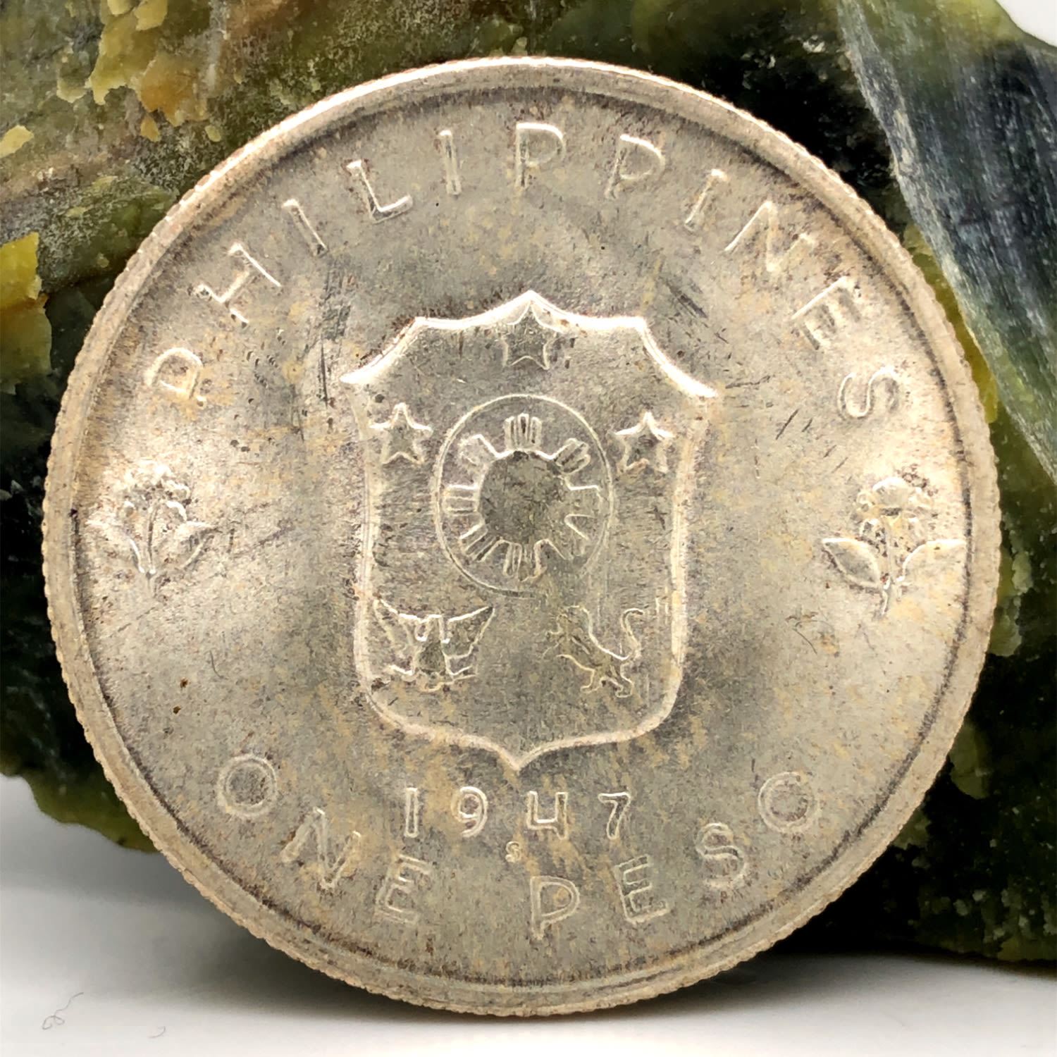 A 1947-S US Philippines One Peso Silver in Choice Uncirculated condition. Featuring General Douglas MacArthur, this US Philippines One Peso Silver in Choice Uncirculated condition, is the same size and Silver Weight as a US Morgan dollar and made at San Francisco mint as a tribute to General MacArthur for his service during WWII. A gem!& nbsp;