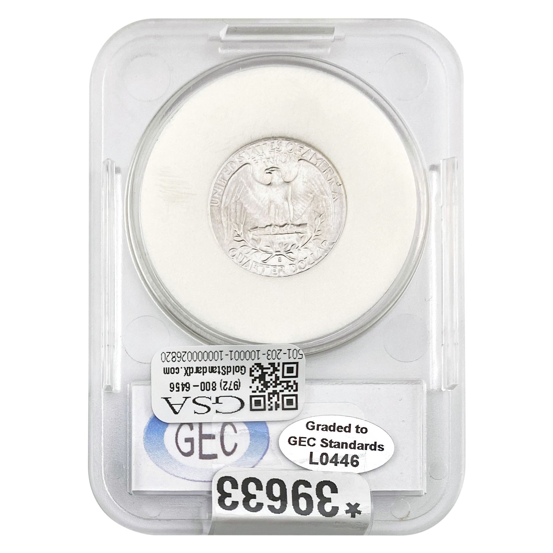 COINS AND CURRENCY LISTED IN GSA’S CATALOG AS GRADED AND ENCAPSULATED BY PCGS, NGC, ANACS, ICG, PCGS CURRENCY, PMG, PCGS BANKNOTE GRADING, CMC OR ANY OTHER THIRD-PARTY GRADING SERVICE ARE LIKEWISE SOLD “AS-IS” EXCEPT AS EXPRESSLY SET FORTH HEREIN. ALL THIRD-PARTY GRADING SERVICE GUARANTEES, INCLUDING AUTHENTICITY, ARE THE SOLE RESPONSIBILITY OF THE THIRD-PARTY GRADING SERVICE AND NOT WARRANTIES OR GUARANTEES OF GSA. BIDDERS SHOULD CONTACT THESE THIRD-PARTY GRADING SERVICES DIRECTLY WITH RESPECT TO ANY CLAIMS OR QUESTIONS THEY MAY HAVE CONCERNING THEIR GUARANTEES AND WARRANTIES. BIDDERS ACKNOWLEDGE AND AGREE THAT AUCTIONEER IS NOT BOUND BY OR LIABLE FOR ANY OPINION OR CERTIFICATION BY ANY THIRD-PARTY GRADING SERVICE. REMOVAL OF A PRODUCT FROM ITS PROTECTIVE CASING OR HOLDER OR ALTERATION OF ANY COIN HOLDER WAIVES ALL RIGHTS CONCERNING THE PRODUCT CONTAINED THEREIN.