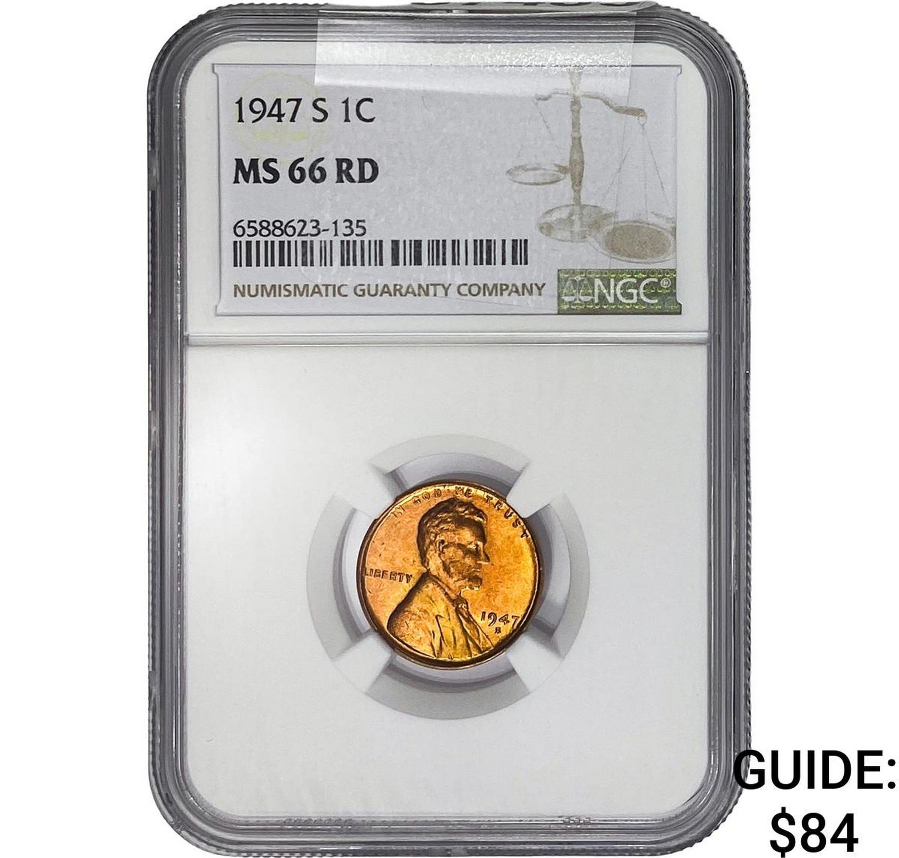 1947-S Wheat Cent NGC MS66 RD