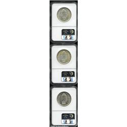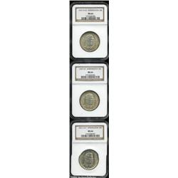 <B>1947<SET> Booker T. Washington PDS Set MS66 NGC.</B></I> All examples are lightly patinated in soft pastel-lilac and silver-gray hues. A lustrous trio with no singularly bothersome abrasions in evidence. The NGC inserts are consecutively numbered 1712268-005, -006, and -007. 3 Coins <BR><BR><B>Important notice:</B> Heritage usually auctions material at the rate of 200-250 lots per hour. On some occasions eBay Live bid software or the Internet may not be able to keep up with the pace of the auction. We recommend placing a realistic absentee bid now as insurance to avoid disappointment. Occasionally the auctioneer may eliminate or reject an eBay Live bid, and the auctioneer may also reopen a lot after the close of the eBay live bidding (usually because we missed an audience bid), and may reject your bid even if it shows you as the winning bidder. By bidding via eBay Live, you agree that Heritage may award the lot to another bidder at its sole discretion under the circumstances described above or any other reasonable circumstances. Since eBay bids are not shown to us until we open the lot on the floor, we treat those bids just like floor bids. In most cases the floor responds before the eBay bid is presented to us, due to Internet lag time, so for consistency we have made it a policy that floor bids are always considered first over tie eBay live bids. Also please note that all Heritage lots purchased through eBay Live carry a 20% Buyer's Premium. Please make sure you read the Terms and Conditions before you bid.