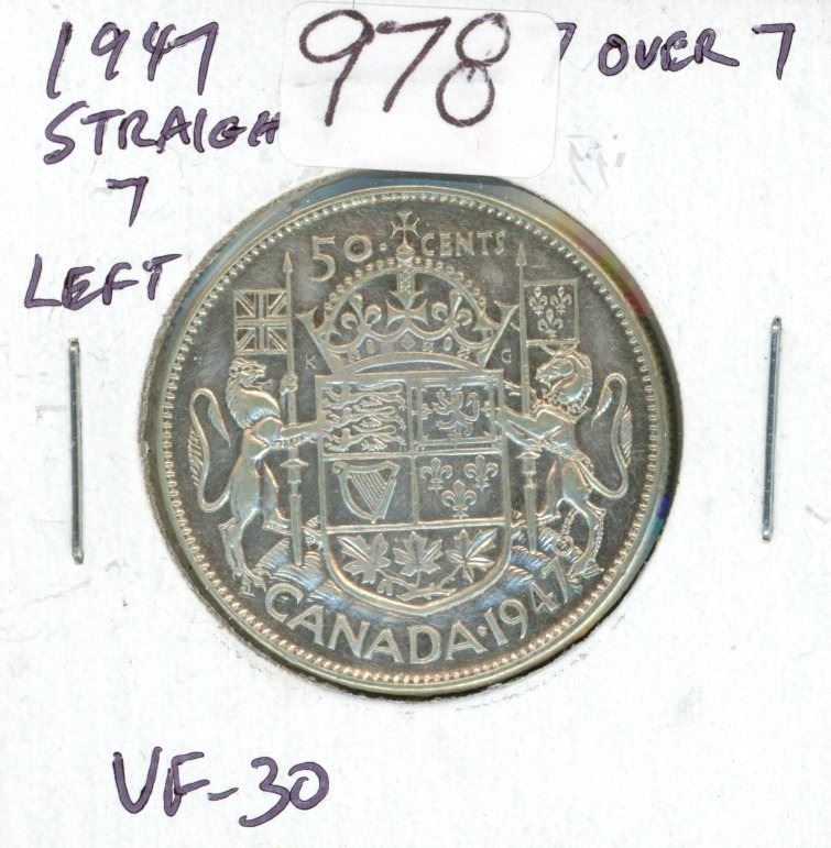 1947 Silver 50 Cents. Straight 7 Left. VF-30.