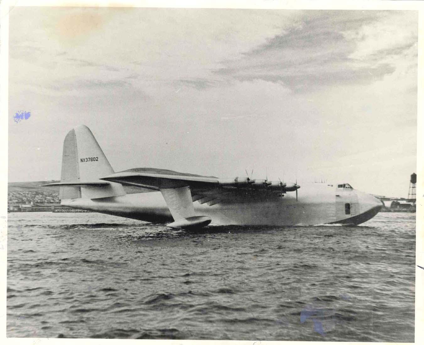 ''Spruce Goose'' Photograph -- Press Photo of the 1947 Flight of Howard Hughes' H-4 Hercules Notoriously Dubbed ''Spruce Goose'' -- 8.5'' x 7''