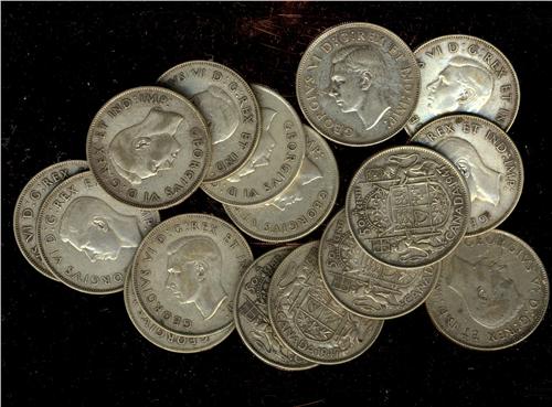 1947 St 7 50¢. Lot of 15 pcs, vary from VG to VF in grade, some with light marks.