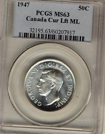 1947 St.7 Left ML 50¢ PCGS MS63, fully brilliant and lustrous.