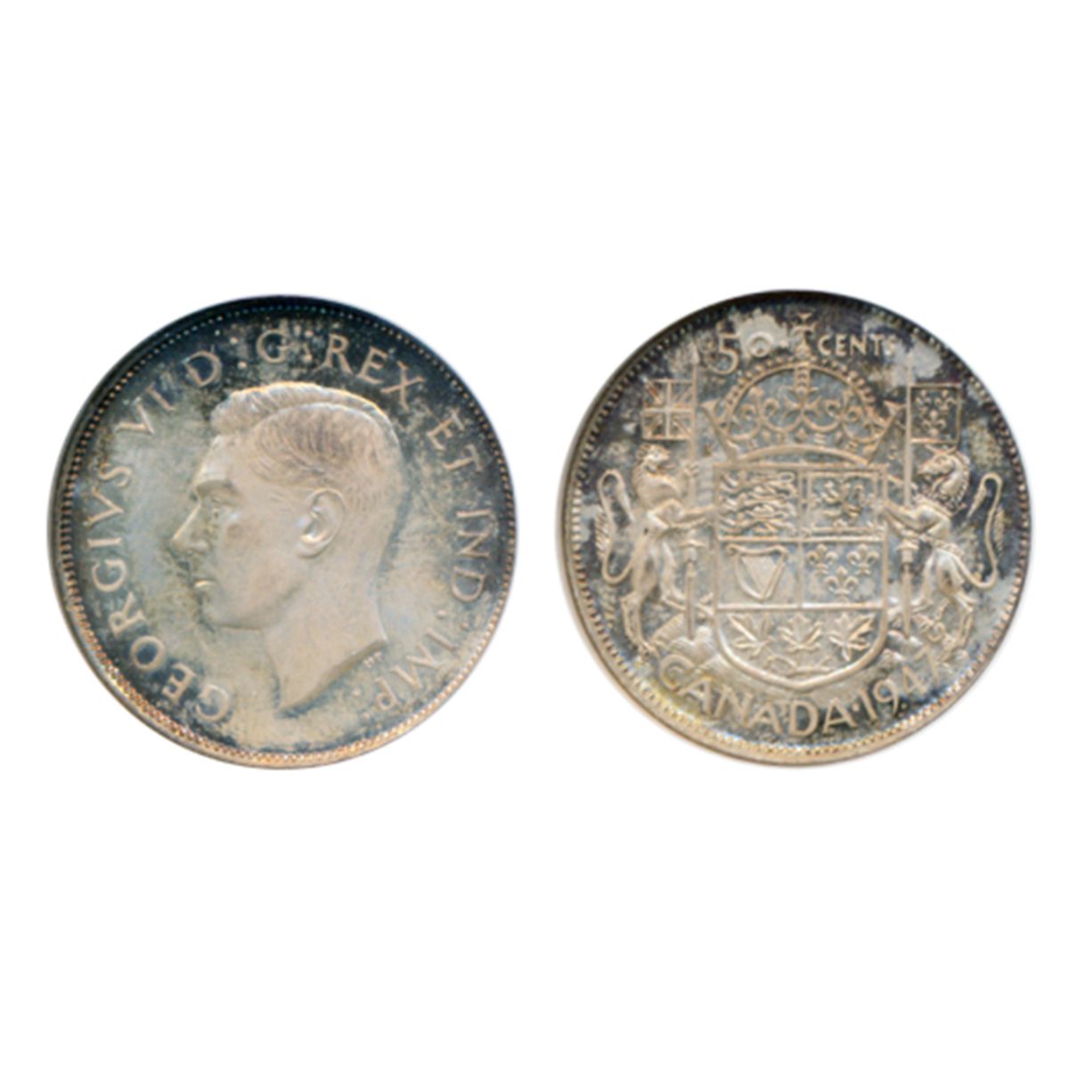 1947. Straight 7. Both ICCS and NGC graded Mint State-64. Medium heavy, deep amber toning.