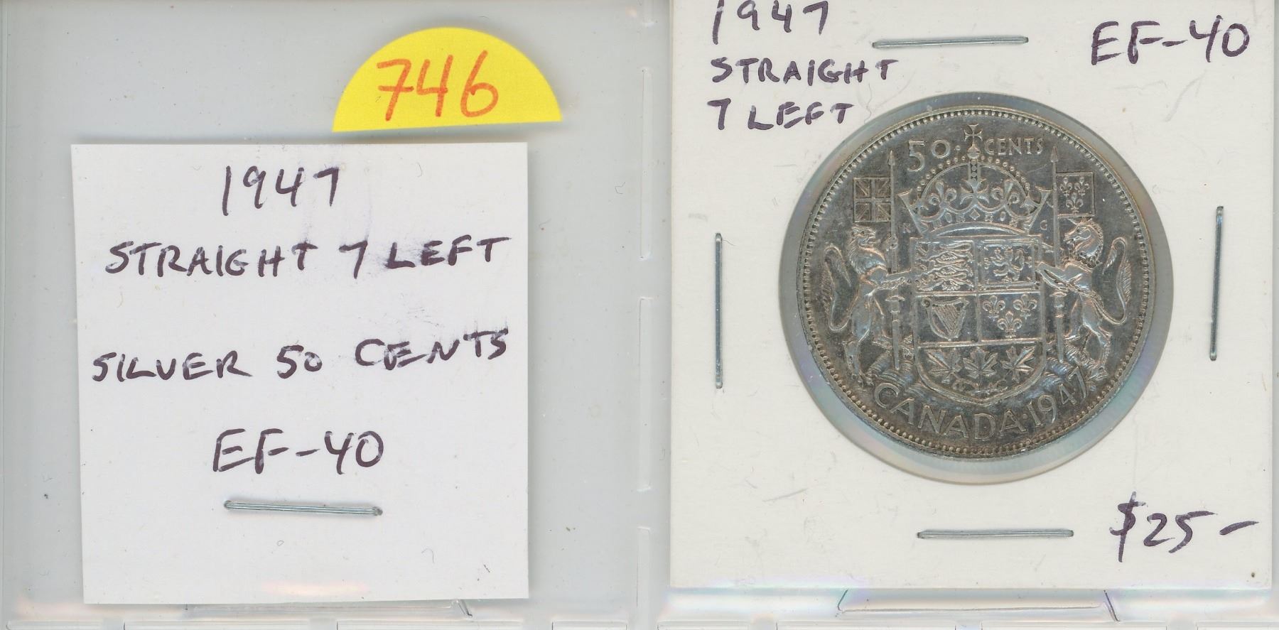 1947 Straight 7 Curved Left silver 50 cents EF-40.