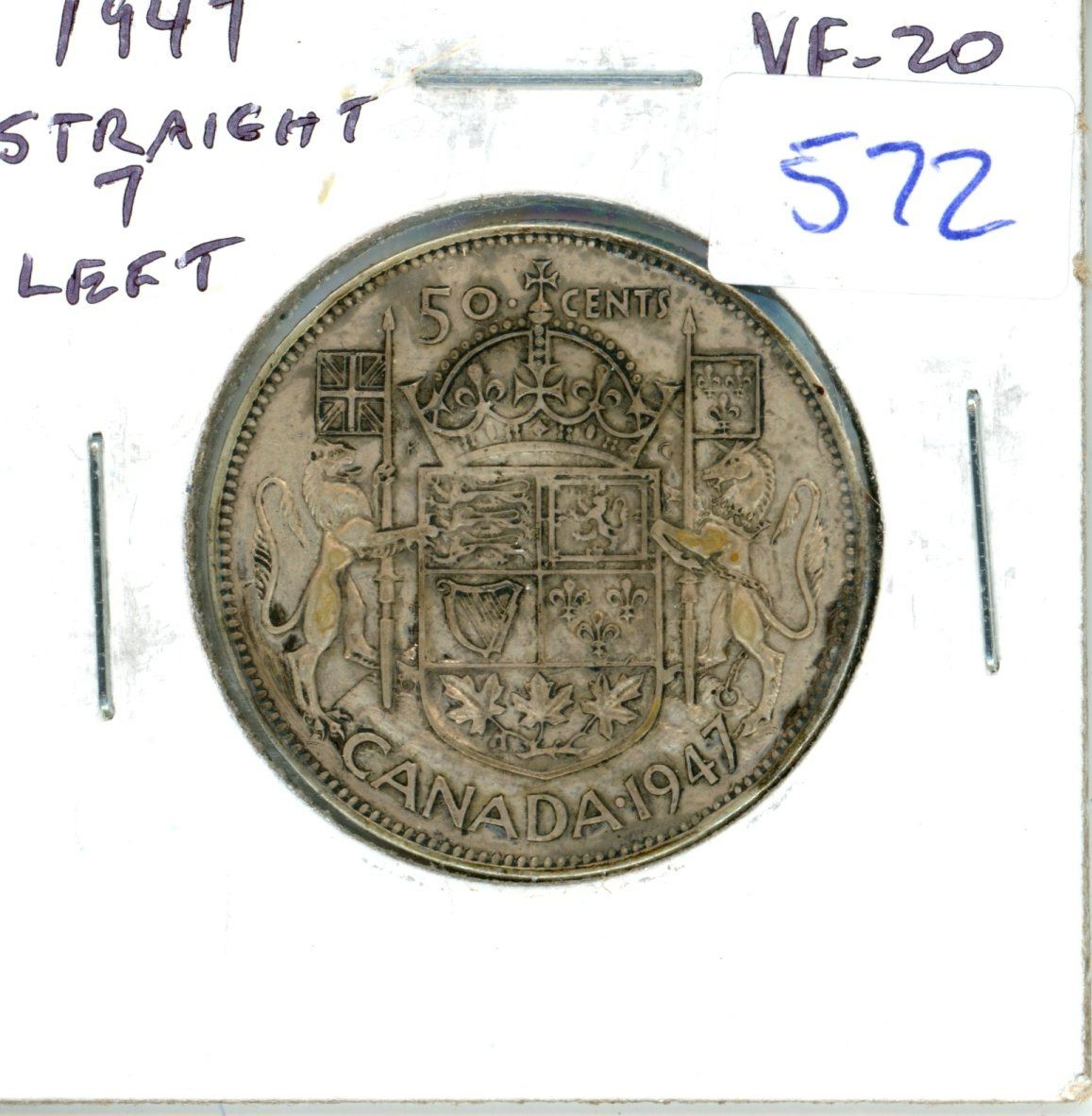 1947 Straight 7 Left Silver 50 Cents. VF-20.