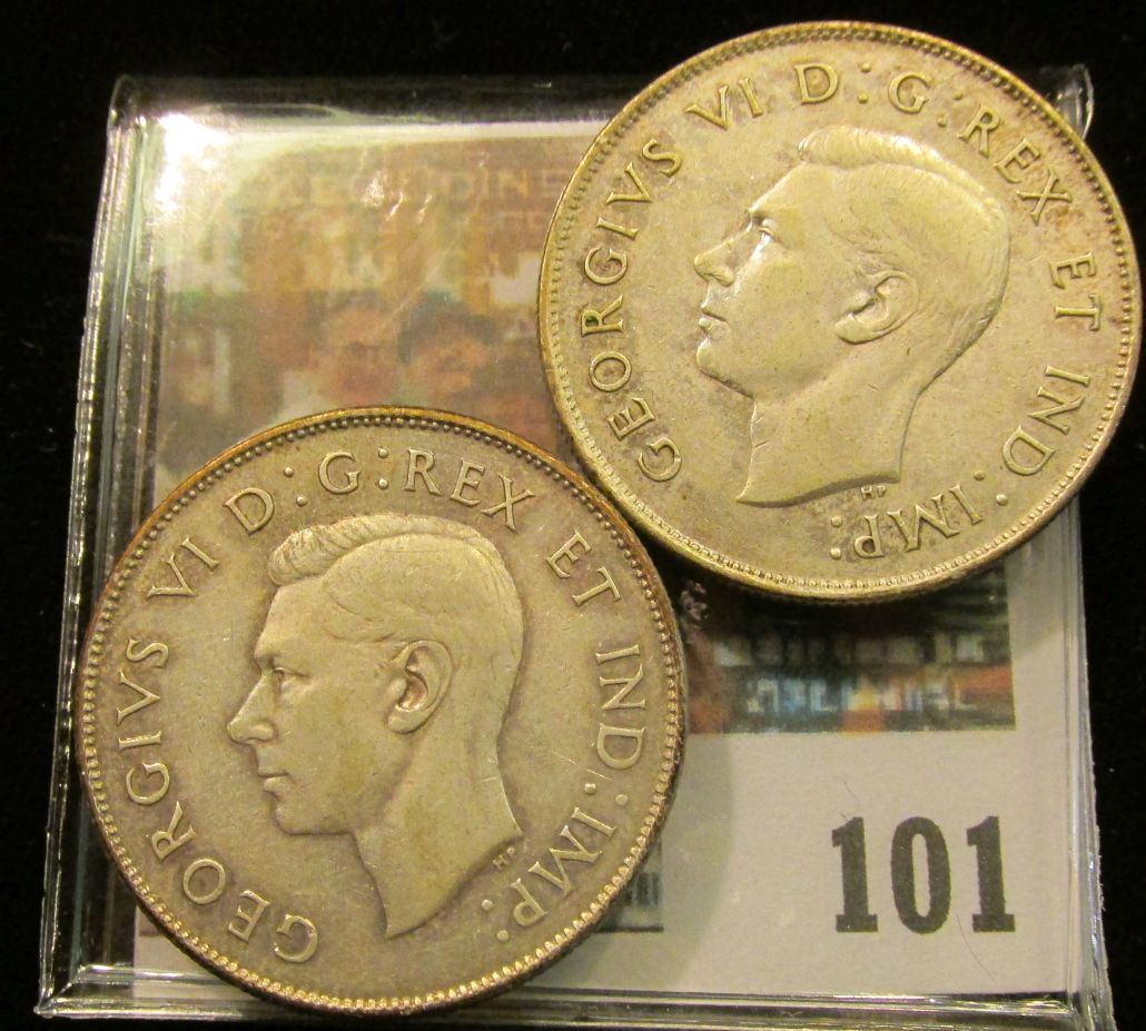 1947 Straight 7 Points Left & Curved 7 Points Right Canada Half Dollars, VF-EF.