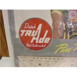 1947 Tru-Ade advertising wall calendar. Depicts young girl on bike. 17.5" x 26.5"