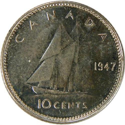 Canada Ten Cents 1947 Very Choice Uncirculated. A near Gem with very pale golden toning