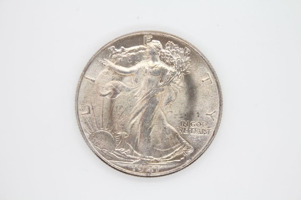 1947 WALKING LIBERTY HALF DOLLAR in Gem BU. The last year issue of the walker series.