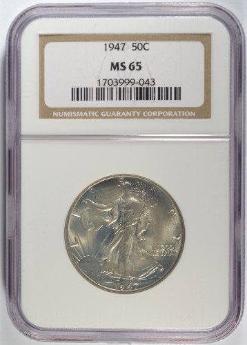 1947 WALKING LIBERTY HALF DOLLAR, NGC MS-65 GEM!