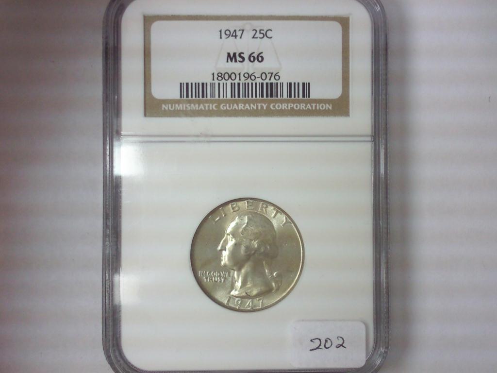 1947 WASHINGTON SILVER QUARTER NGC MS66