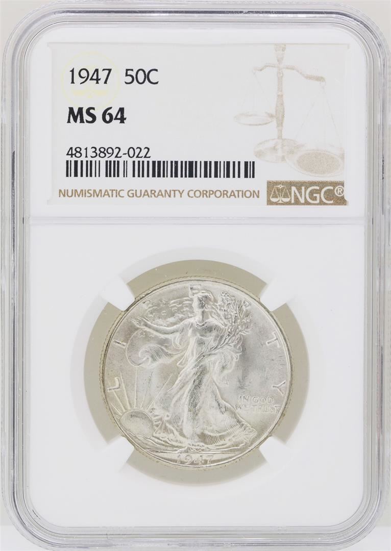 One 1947 Walking Liberty Half Dollar Coin NGC MS64. NGC Certified.