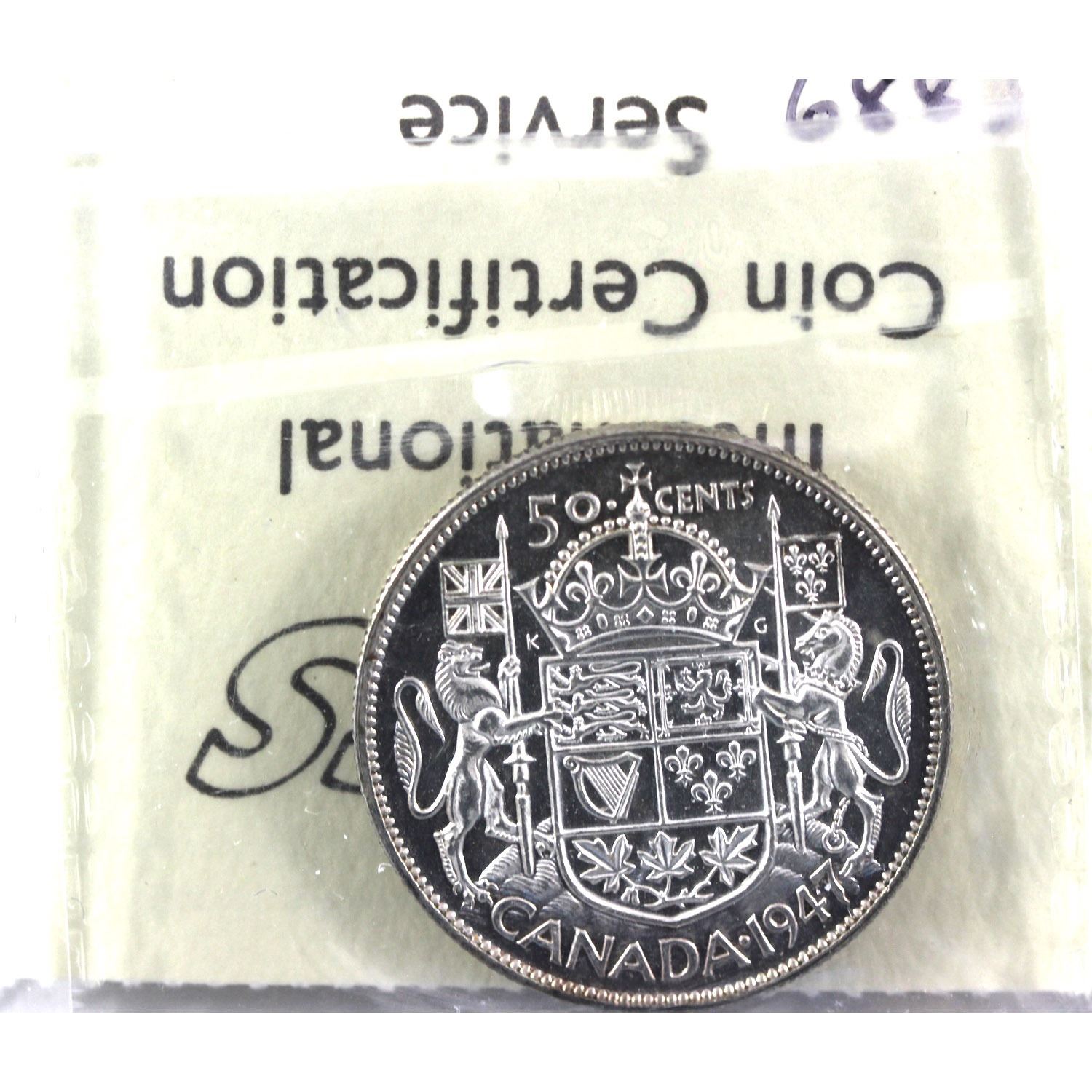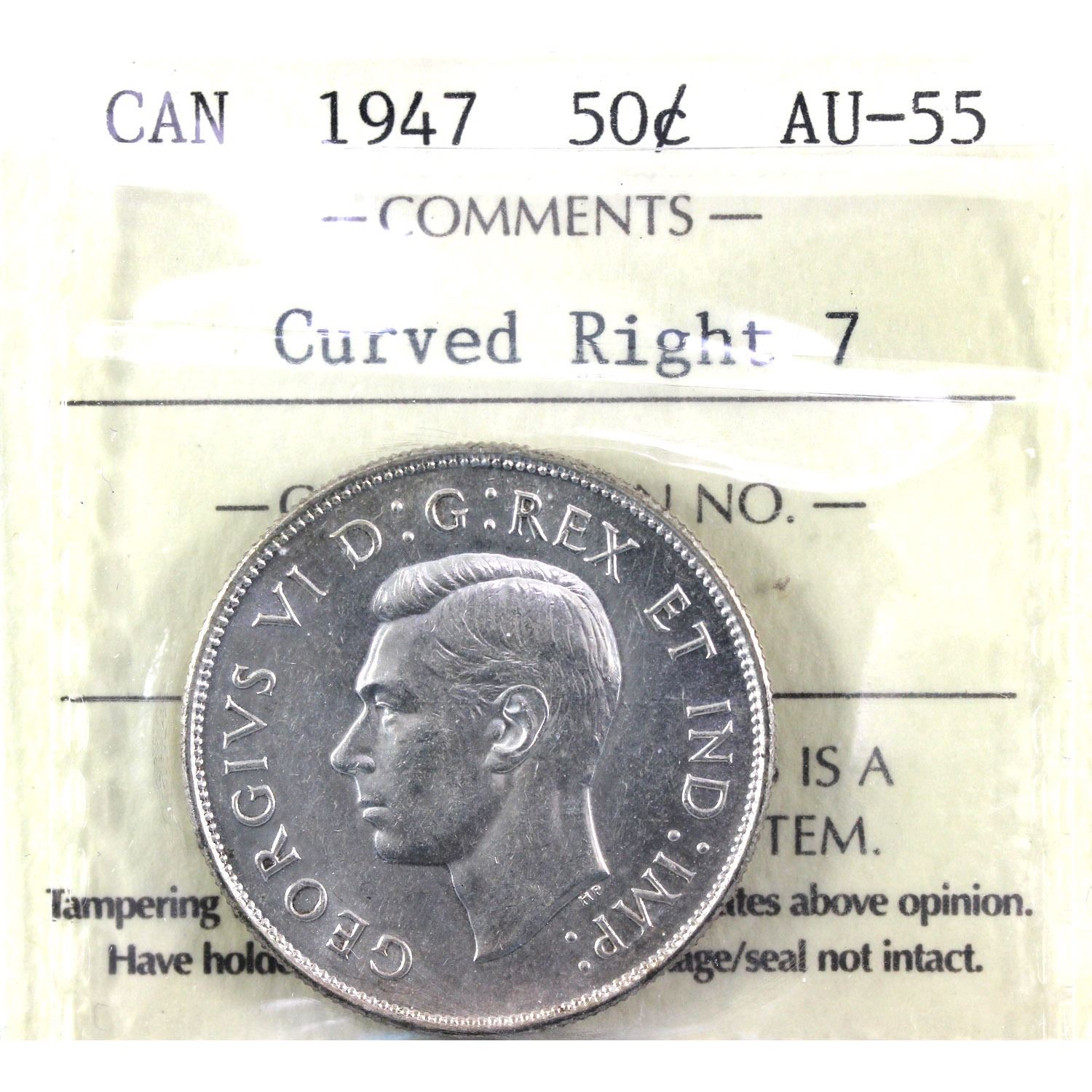 1947 curved right 7 50-cent ICCS Certified AU-55