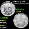 1947-d BTW Old Commem Half Dollar 50c Grades Choice Unc. When examining a Booker T. Washington commemorative look for wear on the high points, on the obverse that is Mr. Washington's right Cheek (from his perspective), and on the reverse the arches on the top building.